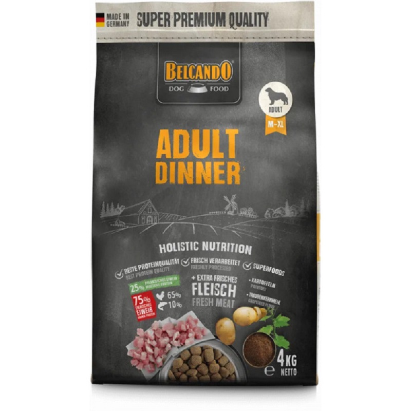 Careful selection of raw ingredients, plenty of tender poultry, healthy potatoes and cold-pressed grape seed flour give BELCANDO® Adult Dinner the ideal combination of nutrients for adult dogs.