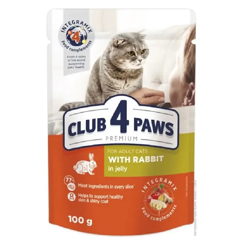 Premium wet food contains 77% fresh meat and meaty ingredients in delicious slices and jelly, which adult cats love very much. The combination of unsaturated fatty acids Omega 3 + Omega 6 maintains healthy skin and shiny coat. The formula is enriched with INTEGRAMIX formula to support the general health and immunity of your pet.