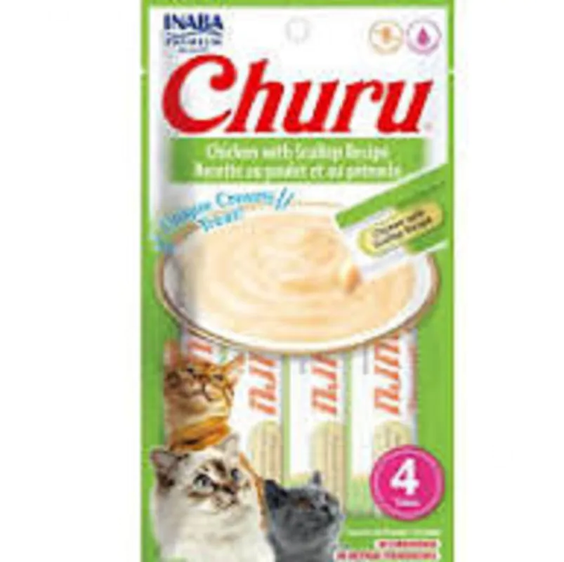 Churu de pollo con vieira – 4und es un snack para gatos que puede lamerse, hecha con pollo y vieira, cuenta con una textura cremosa y un sabor sabroso que tu bebe no podrá resistir. También contiene vitamina E para aumentar la nutrición y no contiene granos o ingredientes artificiales. Simplemente rasgue, exprima y alimente directamente del tubo o en un tazón, además es una excelente manera de agregar hidratación para apoyar el bienestar general, desde la cola hasta los bigotes.