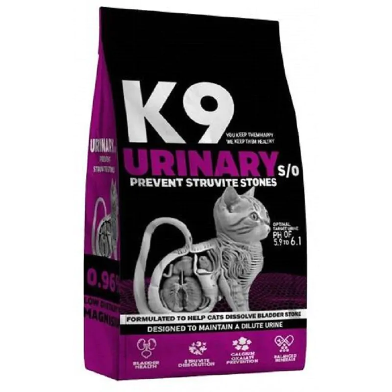 K9 Urinary s/o cat dry food is tailor-made nutrition created just to help maintain urinary tract health. The exclusive cat kibble is designed for the unique way cat uses the underside of their tongue to eat-allowing them to easily pick up, kibble, and crunch away tartar buildup.