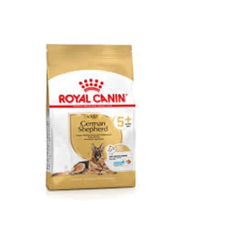 Suitable for adult German Shepherd dogs over 5 years old, ROYAL CANIN® German Shepherd Adult 5+ is specially formulated with breed-specific nutrition in mind. ROYAL CANIN® German Shepherd Adult 5+ contains a combination of antioxidants to support the ageing process and a reduced phosphorus content to support kidney health. ROYAL CANIN® German Shepherd Adult 5+ is specially formulated with EPA, DHA, and collagen to help support healthy bones and joints. ROYAL CANIN® German Shepherd Adult 5+ also helps to support your dog’s digestive health, thanks to the inclusion of highly digestible proteins and a specific blend of fibres. This tailor-made kibble is highly palatable; its size, shape and texture are specially adapted for the mature German Shepherd and can be softened with warm water to allow for easier eating. To make sure that your dog gets a complete and balanced diet, be sure to follow the on-pack feeding guide.